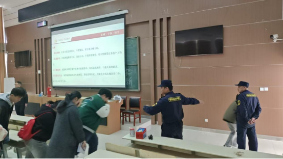 紧随其后的消防安全知识讲座由安保处赵科长主讲。他结合高校人员密集场所的特点,详细讲解了火灾的严重危害性、初期火灾的扑救方法、火场如何逃生法以及消防器材的正确使用方法。重点强调了宿舍内严禁使用违规电器、保持消防通道畅通的重要性,让“防火于未燃”的安全理念深入人心。