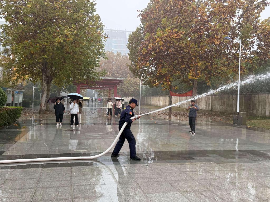 培训结束后,模拟教学楼突发火情,参训人员按应急预案有序完成紧急疏散,有效检验了应急响应机制。紧接着,在室外场地,又组织大家进行了消防水带连接、灭火器使用等专项训练,确保每位参训人员熟练掌握一定的消防技能,消防能力建设得到了提高。