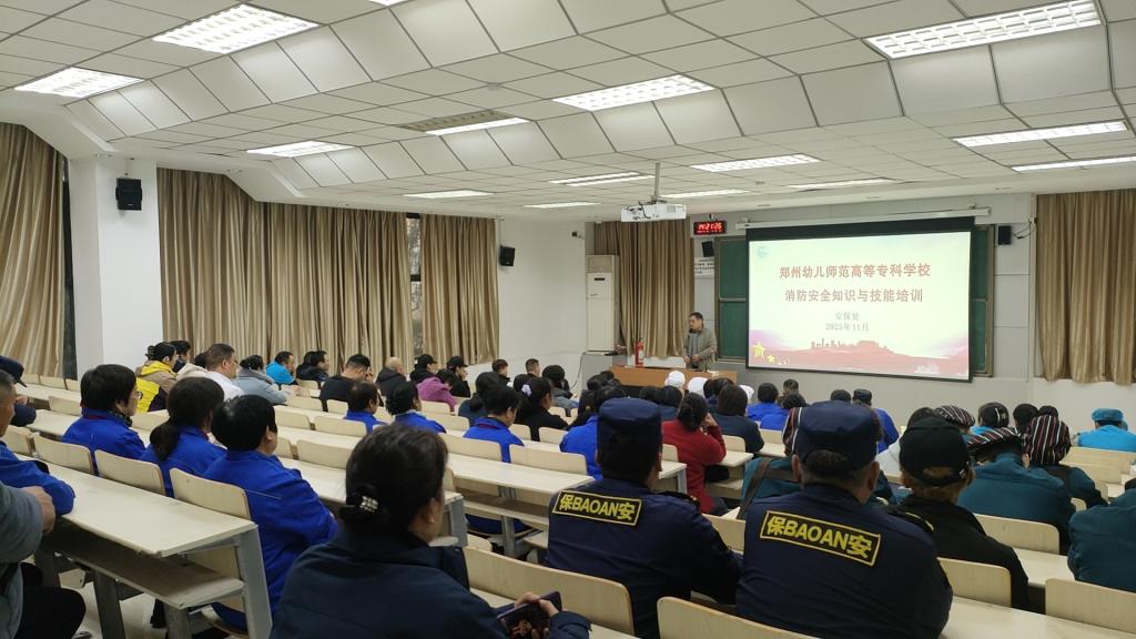 在第34个全国消防日到来之际,为全面提升校园消防安全管理水平,郑州幼儿师范高等专科学校安保处联合宿舍管理部门、后勤物业公司以及餐饮服务公司,于11月6日共同组织开展了重点岗位人员消防知识与技能专项培训。本次培训覆盖安全保卫、宿舍管理、后勤服务与餐饮保障四大业务领域,共计百余名一线工作人员参加。