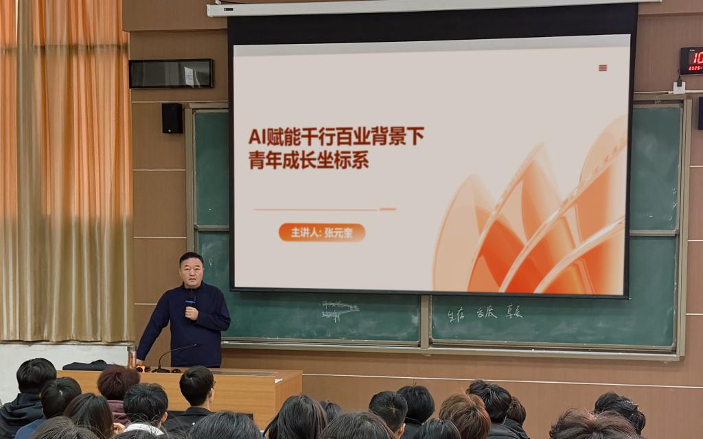 为全面贯彻落实习近平总书记关于新时代学校思政课建设的重要指示精神,落实立德树人根本任务,我校持续开展校领导带头讲授思政课。近日,副校长张元奎以《AI赋能千行百业:党的二十届四中全会精神引领下的青年成长坐标系》为主题,为我校25级人工智能专业学生带来了一堂“科技感”与“思想性”兼具的思政课。