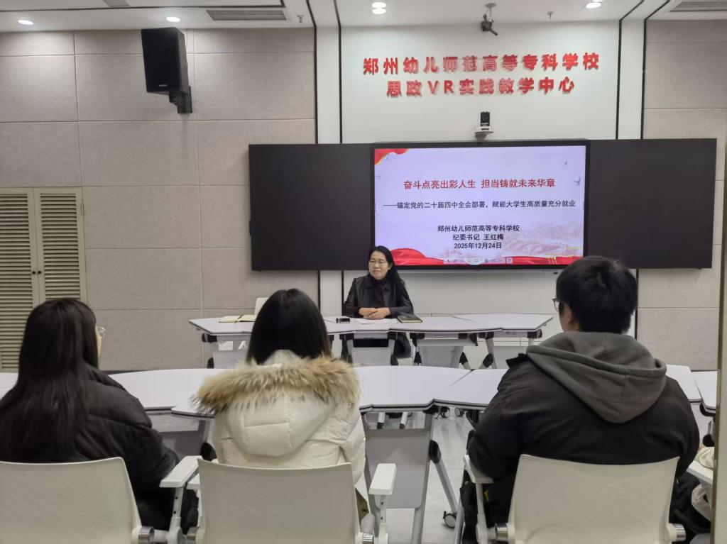 为全面贯彻落实习近平总书记关于新时代学校思政课建设的重要指示精神,落实立德树人根本任务,我校持续开展校领导带头讲授思政课。12月24日下午,纪委书记王红梅以《奋斗点亮出彩人生,担当铸就未来华章》为题,在象湖校区学术交流中心思政VR实践教学中心,为25级人工智能专业学生上了一堂兼具思想深度、历史厚度与现实温度的思政课。