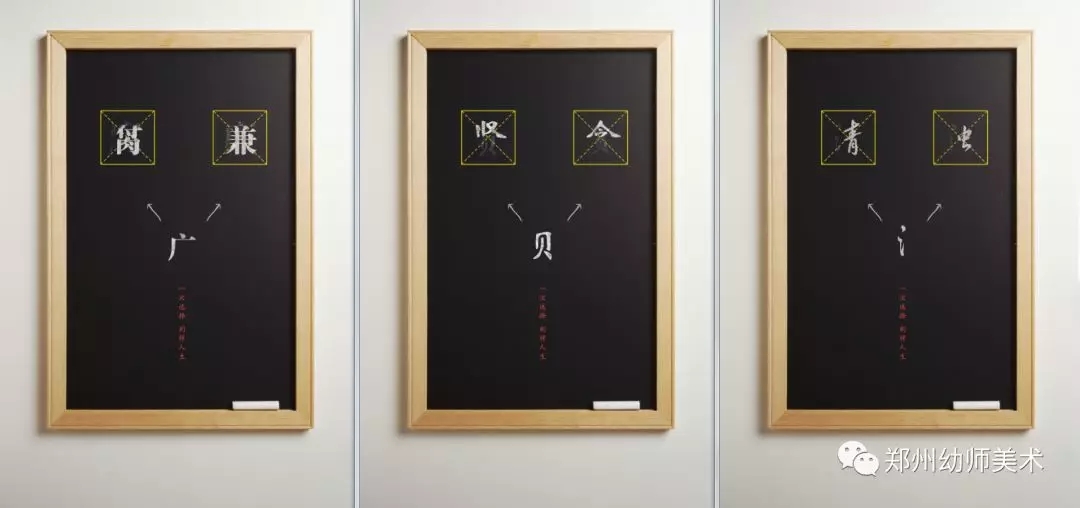 作品创作思路:笔画组成汉字,选择构建人生。偏旁部首和不同笔画组成不同涵义的汉字,正如人的一生中会面临无数次选择,不同的选择带来的结果也会迥然不同。这一系列海报作品以正确面对人生路上的选择为出发点,以提醒我们在工作和生活中要时刻保持清醒,不被利益和诱惑冲昏头脑,字字斟酌,事事谨慎,廉洁从教,诚实为人。