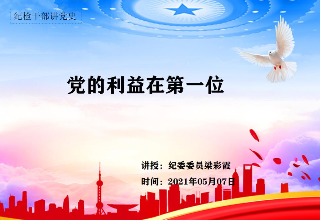 为深入贯彻习近平新时代中国特色社会主义思想,全面贯彻落实习近平总书记在党史学习教育动员大会上的重要讲话精神,庆祝中国共产党成立100周年,学校纪委开展“纪检干部讲党史”系列活动。5月7日,校纪委委员、思政教学部主任梁彩霞在杜岭校区讲授了“纪检干部讲党史”第一课——党的利益在第一位。