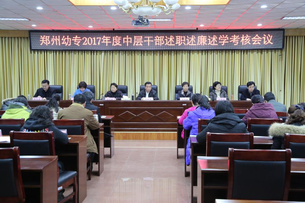 1月12日上午,郑州幼专2017年度中层干部述职述廉述学考核会议在老校区五楼会议室召开。党委书记孙桂林、校长王霄鹂等领导班子全体成员出席会议。会议由党委副书记郭旭娟主持。