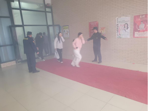15时30分,消防安全疏散演练正式拉开帷幕。在模拟浓烟环境中,同学们掩住口鼻、弯腰低姿,快速转移至室外安全区域。安全保卫处人员维持现场秩序。整个过程反应迅速、配合紧密,在规定时间,所有人员安全疏散。