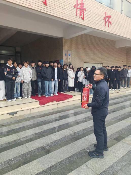 保卫处赵雨东科长详细讲解了灭火器的正确使用方法,特别强调了操作过程中的关键步骤和注意事项,让同学们充分了解消防器材知识。