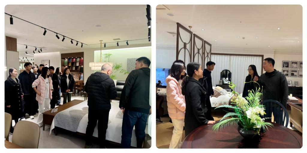 仪式启幕前,中怡(郑州)家居科技有限公司执行董事陈玉带领参会人员开启了一场“从设计到实物”的探索之旅。米宿、青上展示区清晰呈现了“创意如何转化为市场产品”产业学院的师生们直观感受到“设计落地”的工艺门槛;而米宿品牌的青春系家居、青上品牌的东方风单品,其色彩搭配与功能设计,更让师生们对“设计服务生活”有了具象认知,让课堂理论与产业实践有了第一次“零距离对话”。