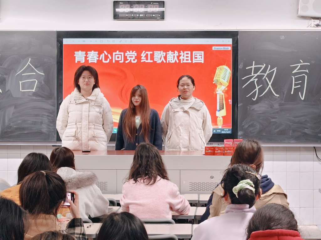 为深入学习贯彻习近平新时代中国特色社会主义思想,厚植青年学生爱党爱国情怀,传承红色基因,凝聚青春力量,融合教育学院 “青春心向党,红歌献祖国” 红歌传唱活动,在西教学楼 25 级 301 教室温情启幕。学院部分同学、学生会成员齐聚一堂,以歌声为媒,诉说对党的赤诚忠心,抒发对祖国的深切热爱。