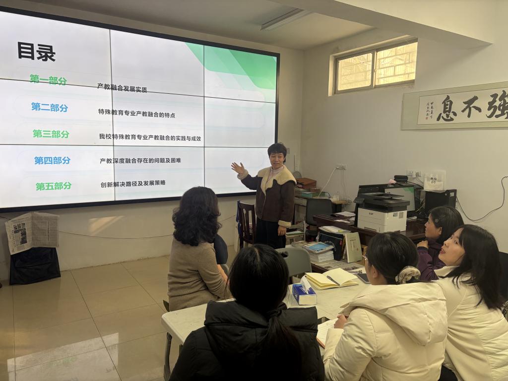 为深入贯彻落实国家关于深化产教融合的决策部署,系统推进特殊教育人才培养模式创新,2025年12月19日下午,融合教育学院在101办公室组织召开了“深化产教融合,推动人才培养模式改革”专题教研会。学院院长、副院长及全体教师齐聚一堂,共商发展大计。