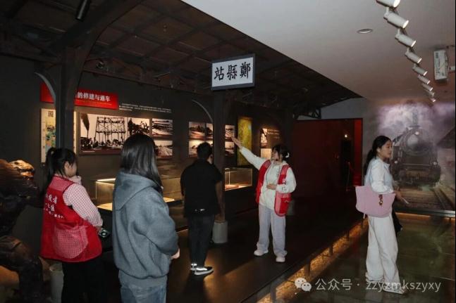 国庆、中秋“双节”假期期间,我院组织校讲解队及青马班共计16名学生志愿者,入驻郑州二七纪念馆助力开展“月圆家国 盛世同欢”双节系列社教活动。 活动期间,校讲解队的同学们每日分上午、下午两个时段开展志愿讲解,累计完成10场,服务游客超500人次。从纪念馆内的珍贵文物展陈,到二七精神的时代内涵解读,队员们的讲解既专业又富有感染力,不少游客驻足聆听,不时点头称赞。