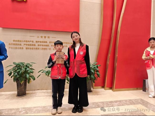 除此之外,校讲解队及青马班的同学们还积极协助二七纪念馆社教老师布置活动场地、帮助组织红色小小讲解员进行诗朗诵、组织参观者进行手工制作等。