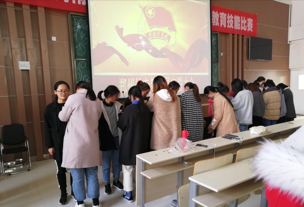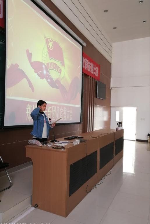 庄严嘹亮的团歌拉开了郑州幼专新团员入团宣誓仪式的序幕。老团员代表亲手为新团员佩戴上团徽,中国共青团团徽的内容为团旗,齿轮,麦穗,初生的太阳及其光芒,写有“中国共青团”五字的绶带。它象征着共青团在马克思列宁主义、毛泽东思想、邓小平理论及“三个代表”重要思想的光辉照耀下,团结各族青年,朝着党所指引的方向奋勇前进。新团员们喜悦、激动的同时,又多了一份责任。