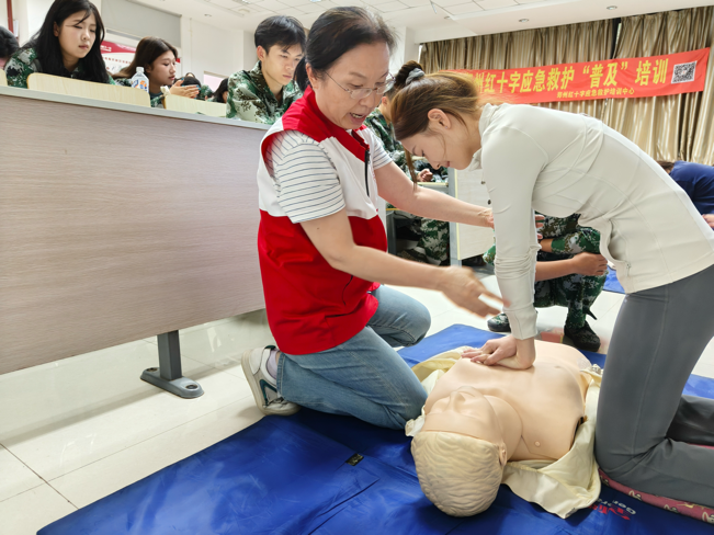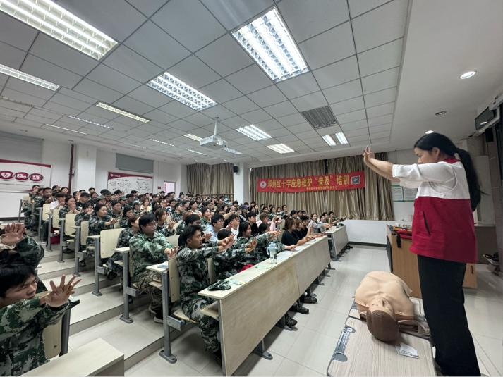 为提升25级新生应急救护意识与实操能力,宣传普及红十字救护知识,2025年9月17日下午,校团委特邀郑州红十字培训中心主任郑建梅一行,到我校象湖校区开展应急教学。