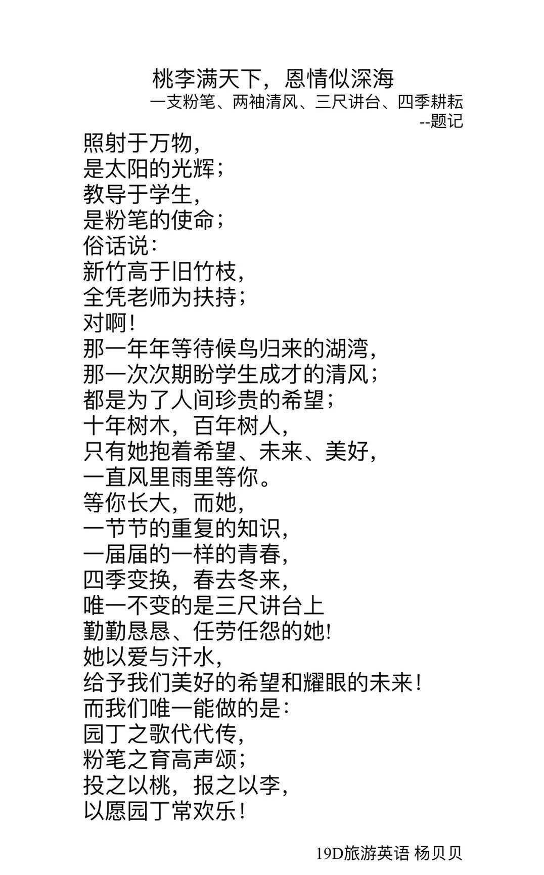 有人说,老师是指明前路的灯塔;有人说,老师是润泽心田的甘泉;有人说,老师是化作春泥更护花的绿叶。还有人说,老师是蜡烛、是春蚕、是为人做嫁衣的园丁……但是,这一切的比喻,都无法囊括老师平凡却伟大的一生。