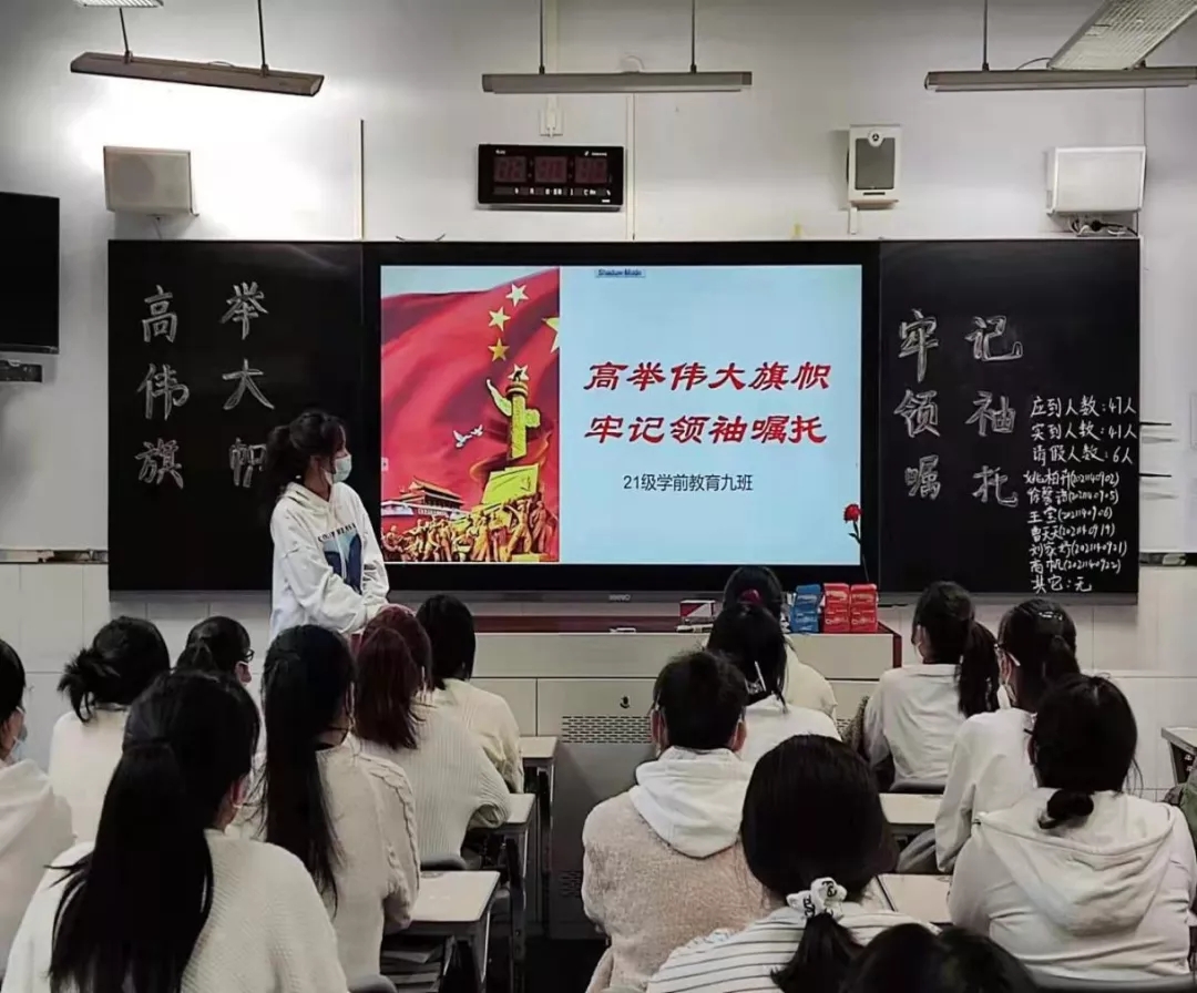 2021年11月8日,校团委组织同学们开展了“高举伟大旗帜,牢记领袖嘱托”主题团课,传达学习了中国共产党河南省第十一次代表大会精神。