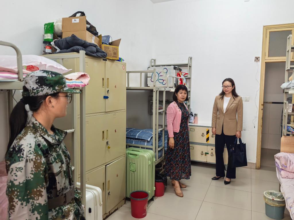 2025年9月29日上午,校长马宏霞在学院党总支书记唐静陪同下,深入杜岭校区25级新生宿舍,与同学们亲切交流,倾听需求,共话成长。
