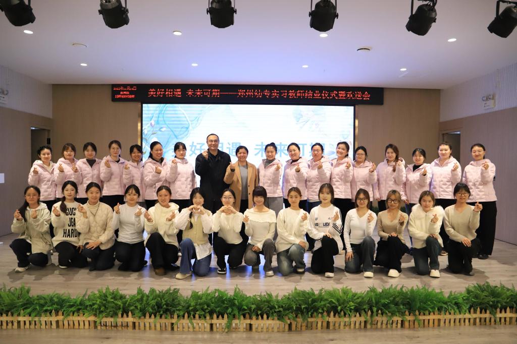 2025年11月14日,郑州市郑东新区秋澄幼儿园举办以“美好相遇 未来可期”为主题的实习生欢送会,为即将结束为期三周跟岗实习的同学们送祝福、寄期望。本次欢送会不仅是对郑州幼儿师范高等专科学校学前教育专业2022级五年制2班同学们实习生活的全面回顾,更是同学们迈向教育新征程的重要起点。