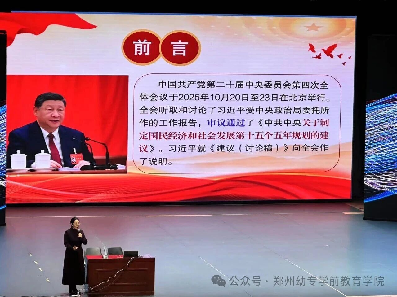 12月18日,我院新老校区同步举办党的二十届四中全会精神宣讲报告会。报告会特邀马克思主义学院党总支书记、院长梁彩霞,马克思主义学院教师薛晓辉、郝丹丹担任主讲,两校区三场报告会,学前教育学院近2000名在校生聆听,报告围绕党的二十届四中全会精神展开系统阐释,推动全会精神入脑、入心。