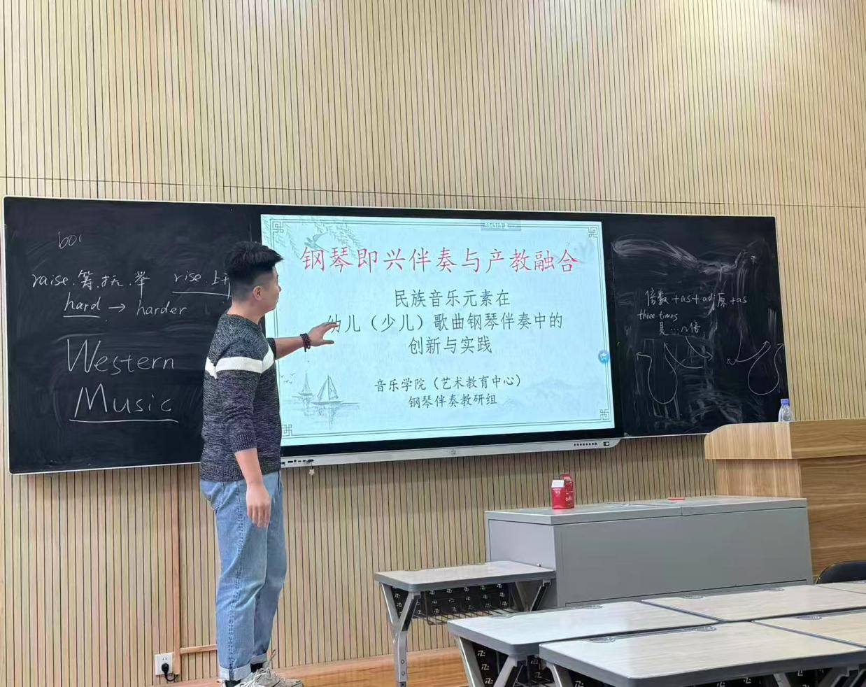 12月25日下午,音乐学院全体教师齐聚一堂,召开“深化产教融合,推动人才培养模式改革”专题教研会。会议由副院长杨靖主持。