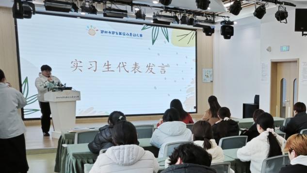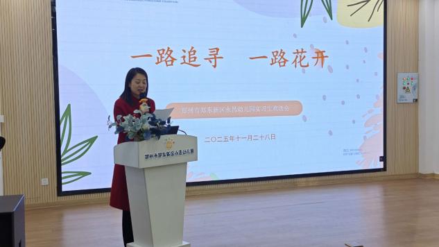 张园长在随后的致辞中,对实习生们的专业素养和敬业精神给予了充分肯定。她特别指出,音乐学院学子们展现出了扎实的专业功底和饱满的教育热情,在音乐活动设计与实施中表现突出,为幼儿园注入了新的活力。她表示,园方高度重视与郑州幼专的交流合作,期待未来能进一步拓展合作领域,共同探索园校协同育人的新模式。