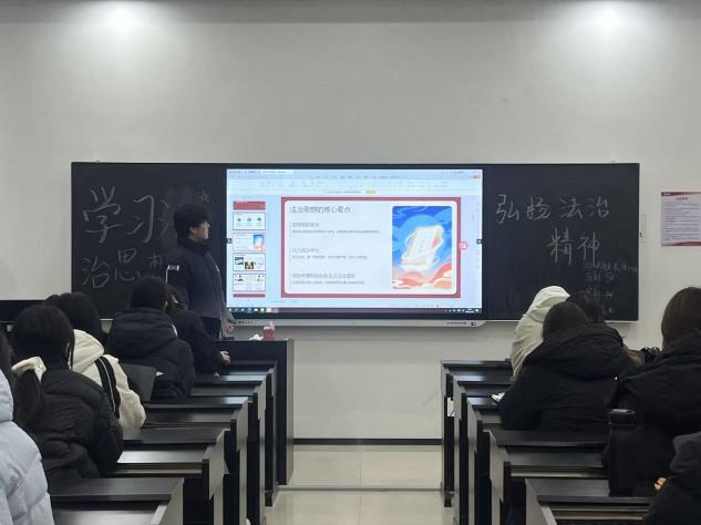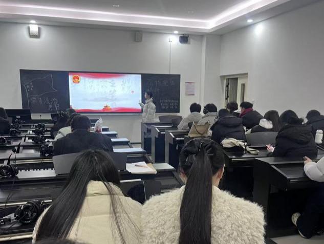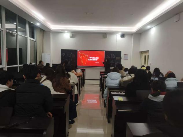 为深入学习贯彻习近平法治思想,落实全国全省教育大会精神,音乐学院于2025年12月8日晚召开“学习法治思想,弘扬宪法精神”主题班会。本次班会旨在帮助同学们提升法治认知水平,引导同学们以实际行动维护法治尊严,做新时代知法懂法的合格青少年。