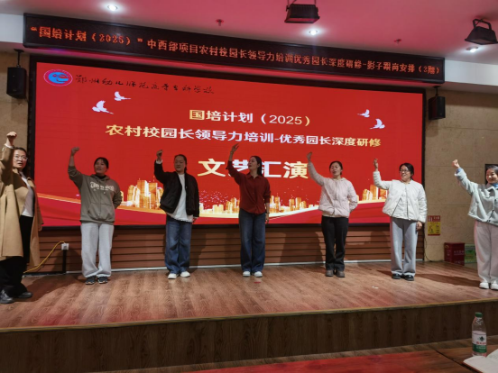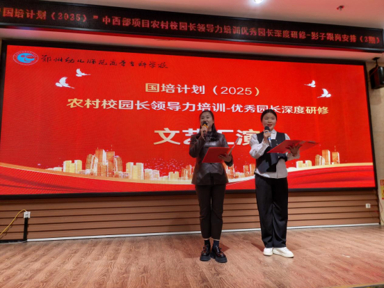 结业仪式后,一场由学员自主策划、全程主导文艺汇演活动精彩启幕,为本次研修之旅画上了浓墨重彩的一笔。汇演以多元创新的形式展开,三句半诙谐生动、配乐诗朗诵深情款款、歌舞表演活力满满,学员们通过丰富的艺术表达,生动展现了研修期间的深刻感悟与丰硕收获,传递出对学前教育事业的无限热忱与美好憧憬。精彩的演绎不仅充分彰显了学员们的综合素质与风采魅力,更饱含着对郑州幼专专业培训服务的由衷敬佩与温暖谢意。