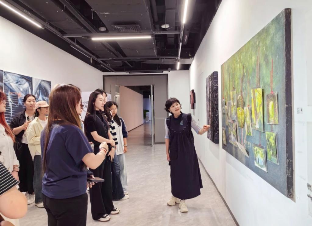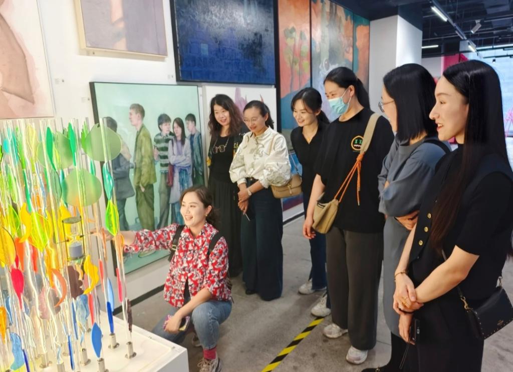 9月20日下午,在美术学院党总支副书记解华的带领下,学院40余名专业教师及学生代表前往比亚迪迪空间,参观“川流不息——首届九大美院毕业生作品展”。该展览汇聚清华大学美术学院、中央美术学院等国内九大顶尖美术院校169位优秀毕业生300余件作品,涵盖绘画、雕塑、设计、装置、影像等多种媒介,以艺术视角诠释科技之美,搭建起科技与人文对话的桥梁。