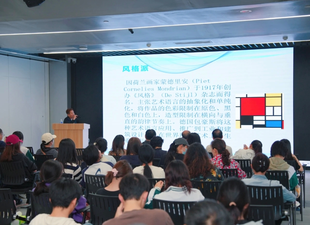 参观过程中,美术学院师生围绕创作细节展开热烈交流。师生们分析绘画、雕塑、影像等不同载体在传递“绿色主题”时的差异,分享各自对创作形式的新思考;在“数字艺术”话题下,大家聚焦参展的互动数字作品,探讨技术如何让观众更深入地感受艺术表达,现场学术氛围浓厚,迸发诸多创作灵感。活动期间,师生们还聆听了西安美院王卿教授的专题讲座《关于你想了解的艺术领域与艺术现场》。王教授结合展览中的鲜活案例,梳理当代艺术流派发展脉络,剖析观念更新、材料拓展与语言转化对创作的影响,为同学们把握时代语境、拓展创作边界提供全新视角。