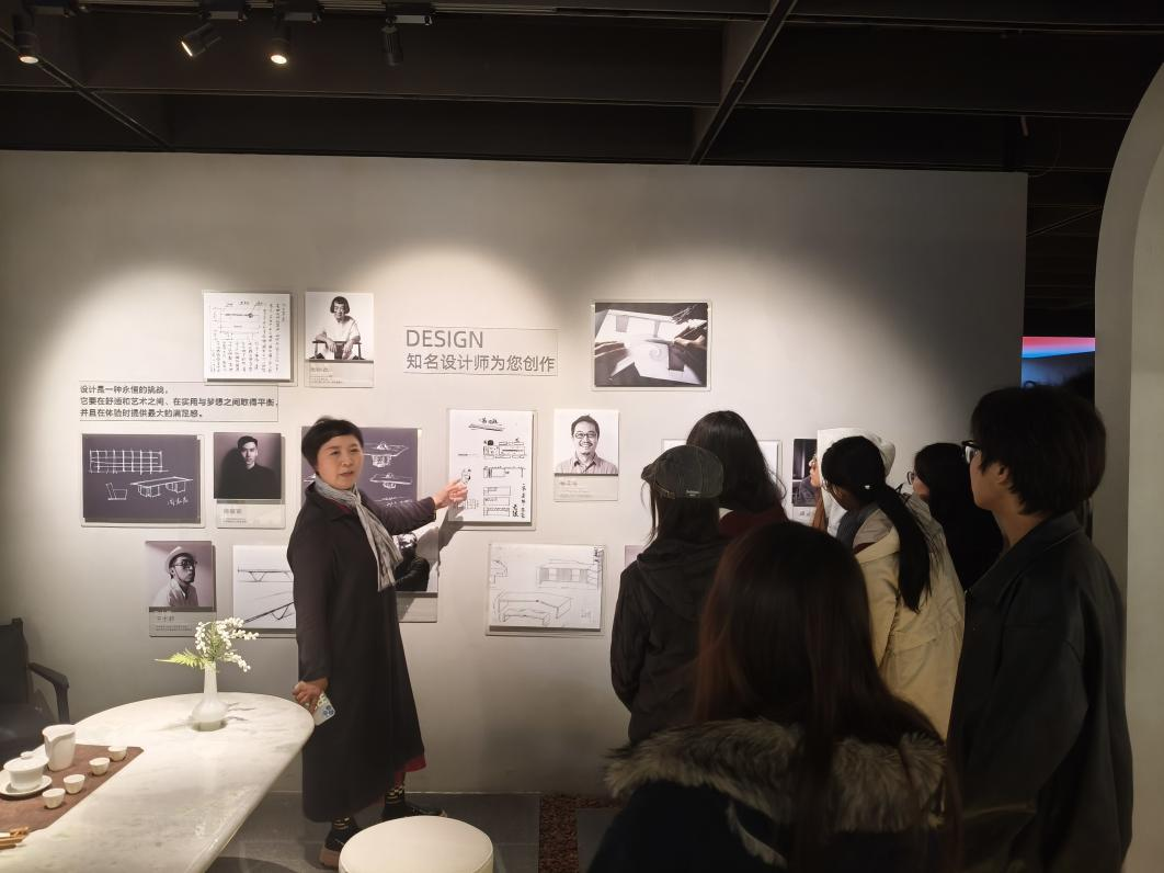 在参观过程中,同学们带着课堂所学主动求知,认真聆听讲解要点,及时用手机记录设计细节,并就设计工艺、材料应用难点等问题与讲解员深入交流。潘苗老师结合现场实物案例,同步开展专业知识点延伸讲解,引导学生思考理论知识向实际设计能力转化的路径;孟祥凯主任适时补充专业指导,进一步丰富了学生的行业认知。在各家居陈设展示区,同学们驻足细致观察,围绕空间规划的合理性与创意亮点展开热烈讨论,现场学习氛围浓厚。