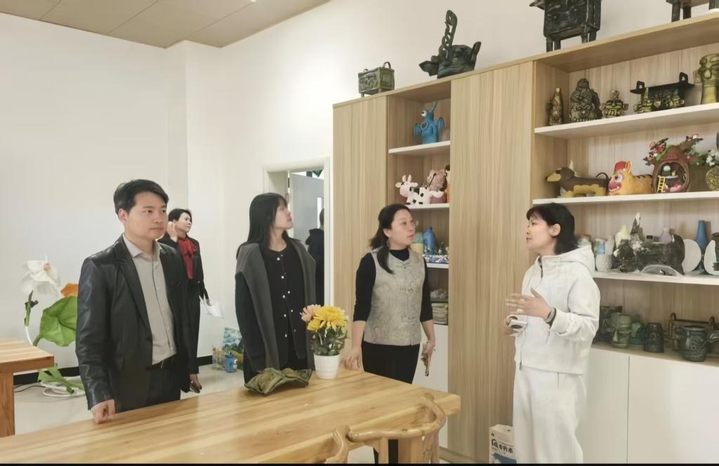 2026年3月29日,全国融合美育行业产教融合共同体理事长王红丽、执行秘书长王青、研究中心副主任朱琳一行,莅临郑州幼儿师范高等专科学校象湖校区,在校长张元奎、教务处副处长段美玲陪同下,实地参观美术学院实训室并开展交流。