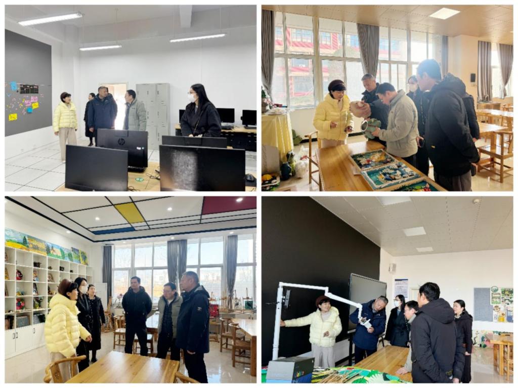 美术学院院长朱晓飞、副院长解华热情接待了来访团队,并陪同参观学院书法、陶艺、摄影、中国画、布艺、儿童美术中心及计算机实训室等实践教学场地。参观期间,解华副院长详细介绍了各实训室的建设理念、功能布局及实践教学应用成效,集中展示了学院在艺术设计类人才培养中“重实践、强技能”的办学特色,来访嘉宾对学院完善的教学设施与浓厚的艺术育人氛围给予高度认可。