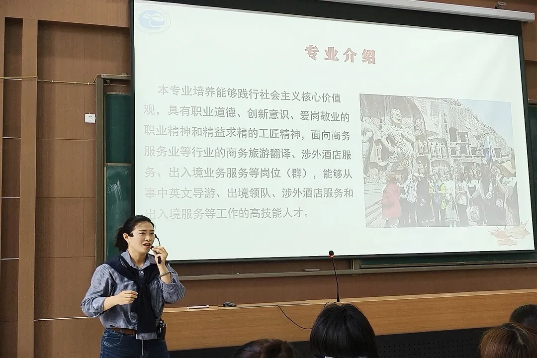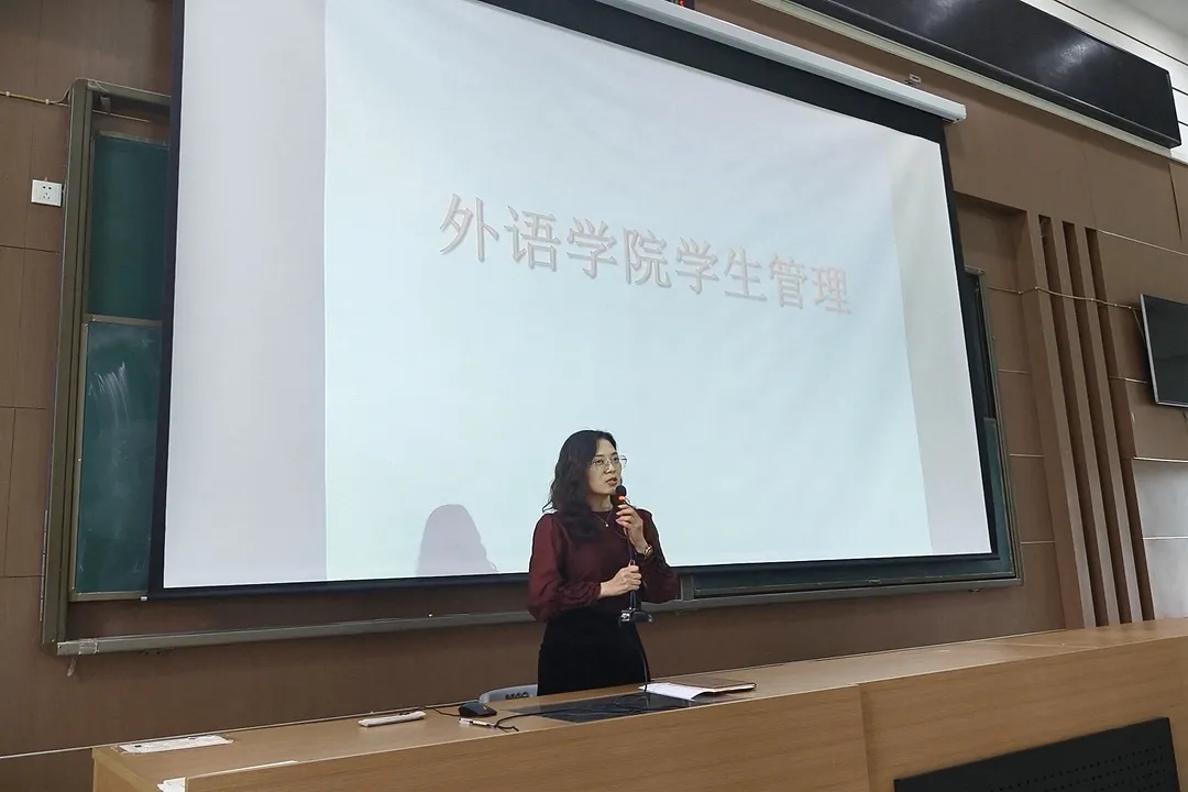 会上,各专业负责人及教师聚焦核心内容展开讲解。旅游英语专业负责人岳翔从课程体系、核心技能训练,到文旅行业就业方向与岗位需求,为新生梳理职业发展脉络;应用西班牙语专业负责人徐丽娜博士结合小语种就业优势、跨境行业应用场景及留学深造渠道,解读专业特色;学工办主任高翔围绕学院学生管理条例,逐项说明日常考勤、学风建设、奖惩评定等核心要求。最后,学院党总支副书记吴宏宇作总结讲话,寄语新生立足专业夯实基础,主动探索成长方向。