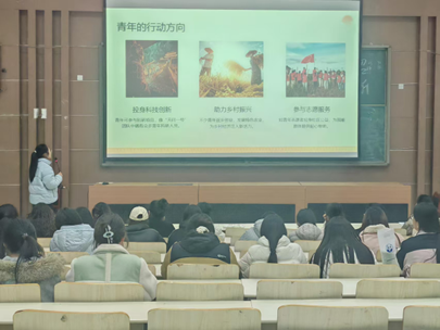 活动伊始,工作人员引导参会人员有序签到,确保学习活动规范高效开展。随后,主讲人围绕党的二十届四中全会的核心内容,通过PPT展示的形式,系统讲解全会提出的新思想、新论断、新部署,结合青年学生成长与团学工作实际,将理论要点转化为易懂的实践指引。
