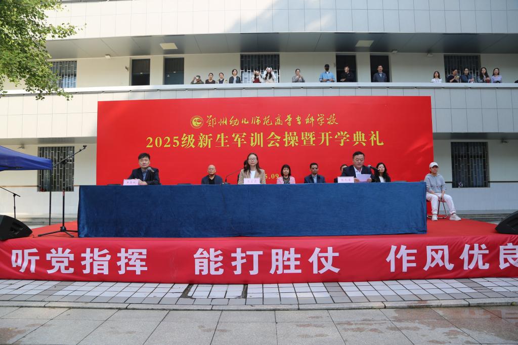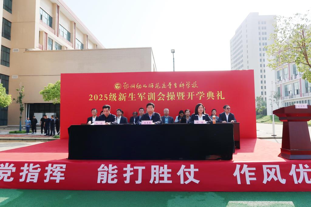 郑州幼儿师范高等专科学校象湖、杜岭两校区于9月29日分别隆重举行2025级新生开学典礼暨军训成果展示。学校领导、承训部队官兵、各职能部门和二级学院领导干部、2025级全体新生及学工干部、专兼职辅导员共同参与了这一盛会,见证新生的蜕变与成长。