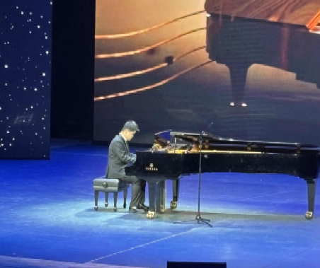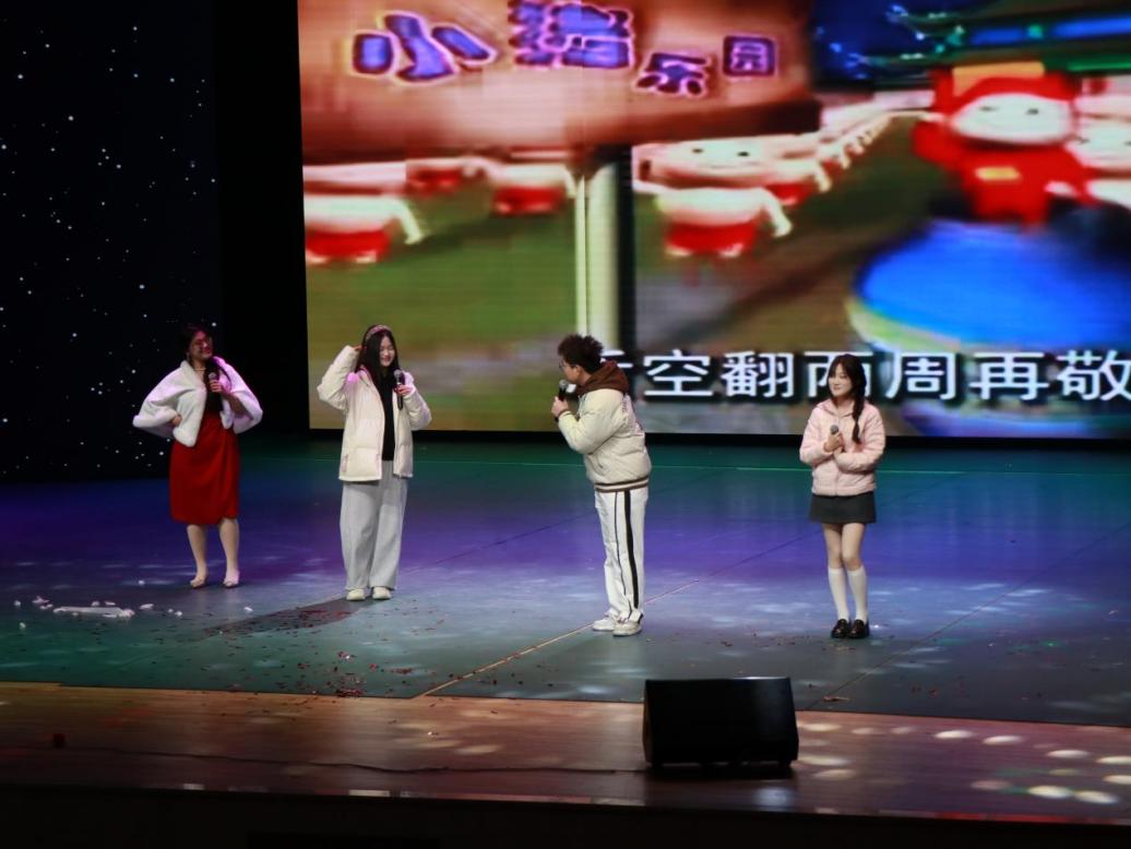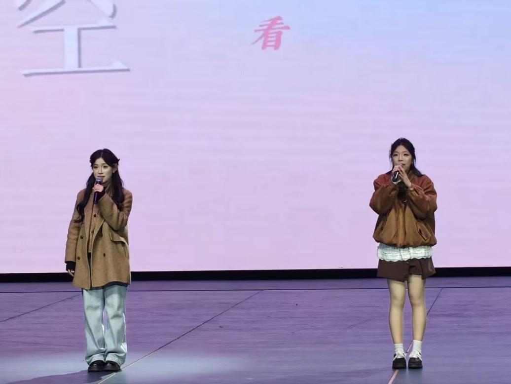 为呈现一场高质量的元旦晚会,从舞台走位的精细调整,到灯光舞美的设计搭配,每一个环节都凝聚着学子对艺术的热爱与执着。舞台上的每一个音符婉转,都蕴藏着音乐专业选手无数次的练声与打磨;每一幅视觉呈现的惊艳,都凝聚着美术专业选手彻夜的构思与创作。从选曲、编配到舞台视觉设计,从反复彩排到细节调整,选手们以专业的态度和对艺术的热爱,将汗水化作了今夜的璀璨。他们用音乐勾勒旋律的轮廓,用色彩铺展艺术的浪漫,让“音你而动至美天籁”的主题在舞台上鲜活绽放。