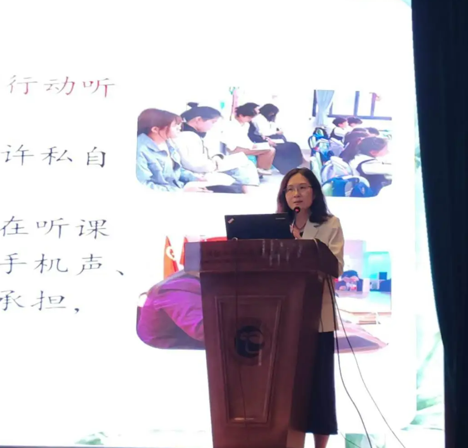 中国语言文学院周杏坤副院长作总结性讲话。周院长对赵健娜校长的倾囊相授表示感谢,她恳切地对同学们提出“在这十日的见习中,能够用眼睛去观察细节,用心去体会教师的情怀,用脚步丈量成长之路;能够顺利地开始,完美地结束”的期望。
