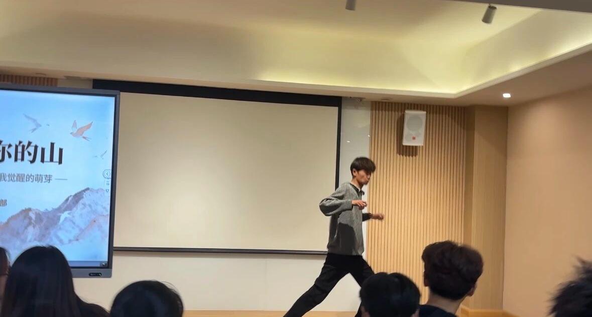 活动在主持人汤礼铭与康文卓的引导下拉开序幕。开场舞蹈表演为现场营造了温馨而专注的氛围。随后,主持人带领大家走进“塔拉的世界”,通过PPT与视频概览,回顾了她从17岁前未接受正规教育到成为剑桥博士的震撼历程。书中那句“你可以爱一个人,但仍然选择离开他们”,引发了在场同学对家庭与自我关系的深刻共鸣。