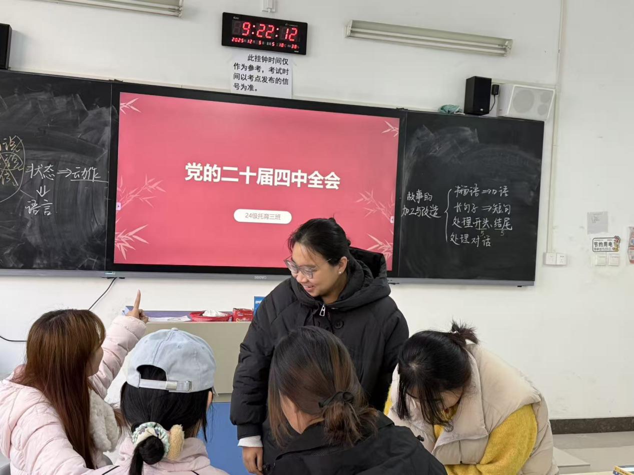 为深入学习宣传贯彻党的二十届四中全会精神,引导广大青年团员将思想和行动统一到全会决策部署上来,智慧服务与管理学院于2025年12月5日上午组织各班团员自主开展党的二十届四中全会精神专题学习活动,引领团员深刻领会全会精神实质与核心要义。