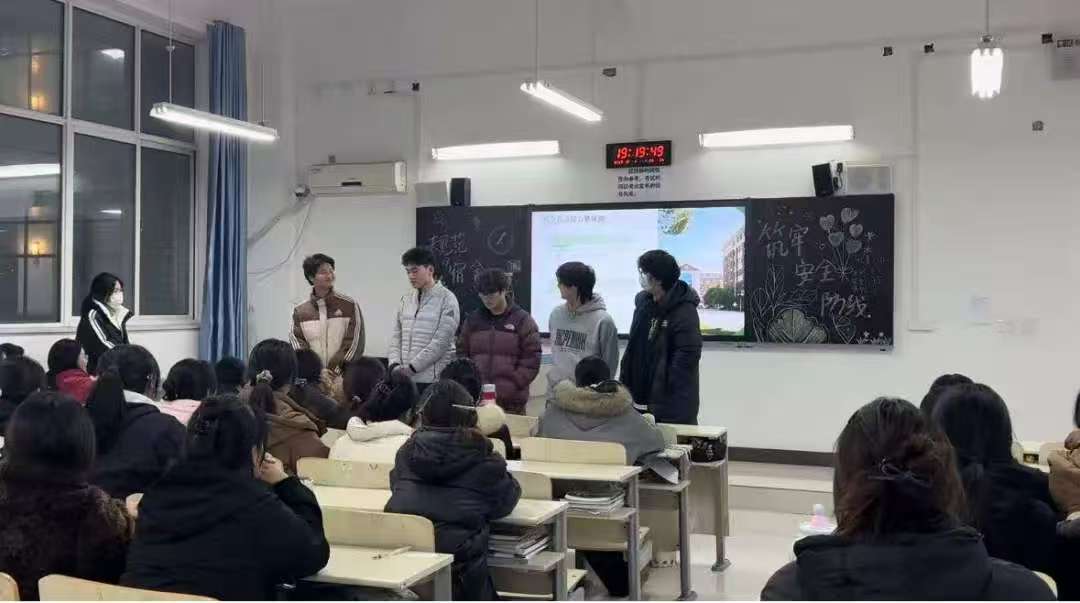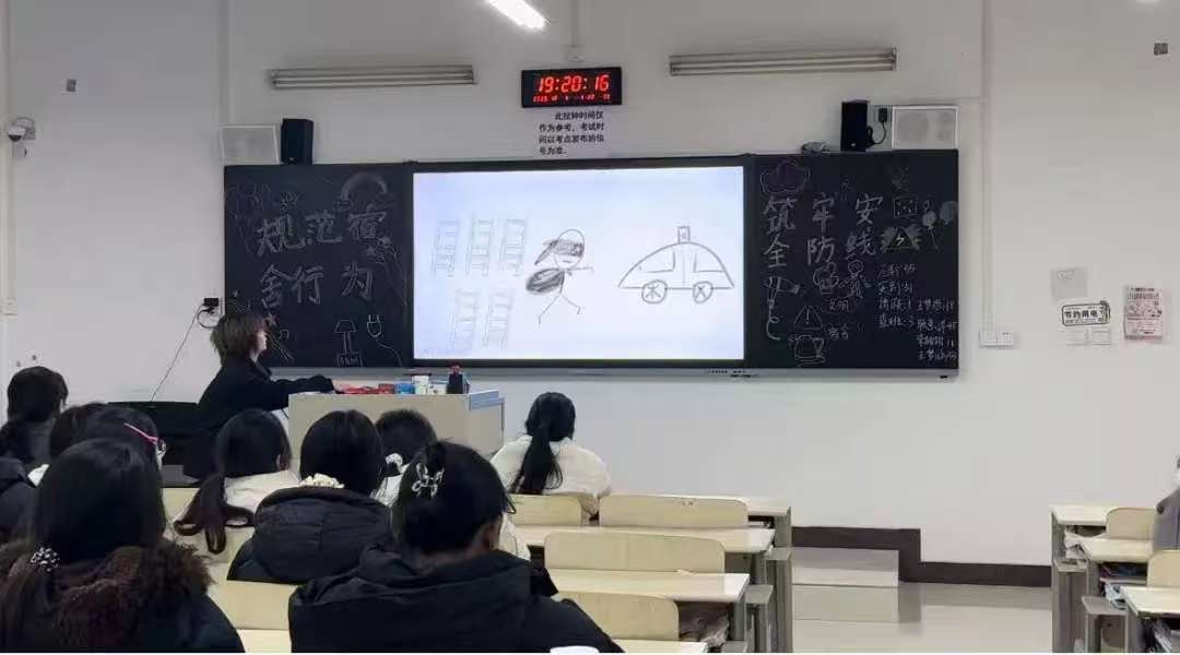 班会围绕近期宿舍中出现的违规用电、占用公共区域、乱扔杂物等问题展开。各班级系统学习了宿舍安全管理规定,重点讲解了违规行为的危害及相应处理办法。为增强教育效果,多数班级创新形式,通过自编自演情景短剧再现安全隐患场景、开展宿舍安全知识趣味竞答、组织“隐患查找”小组讨论等互动环节,使安全知识在轻松活跃的氛围中得到有效传递。同学们积极参与,在讨论中反思自身行为,共同探讨维护宿舍安全的可行做法。